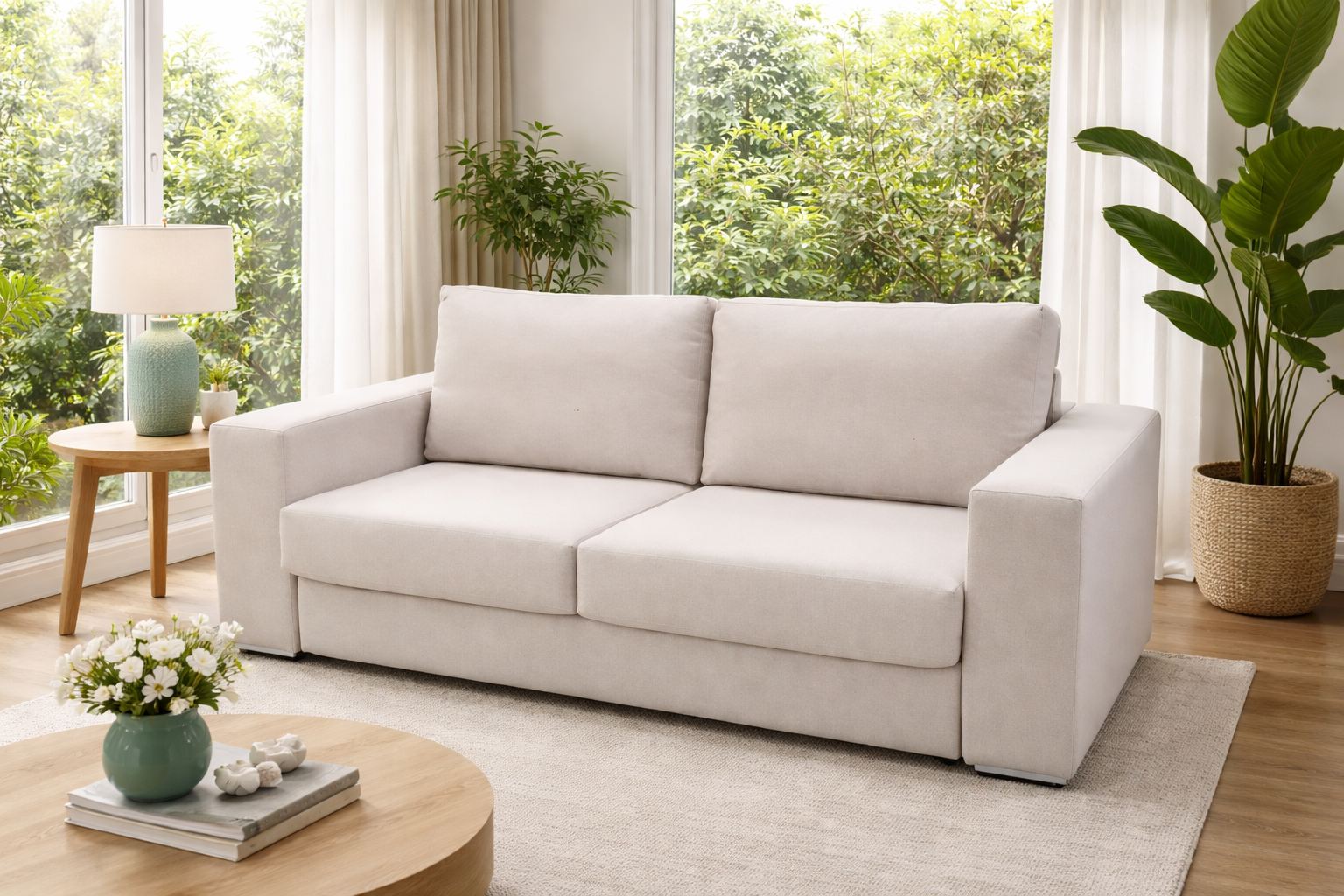 El sofá cama Amsterdam es la opción perfecta para quienes buscan funcionalidad sin sacrificar estilo ni confort. Sus asientos de espuma de poliuretano con una densidad de 30 kg y los respaldos rellenos con fibra hueca siliconada garantizan un descanso cómodo durante el día. Su estructura de madera de pino macizo de 25 mm y tablero de partículas recubierto con espuma de poliuretano de 18 kg asegura resistencia y durabilidad a largo plazo. Tanto los asientos como los respaldos son desenfundables, lo que facilita su mantenimiento.